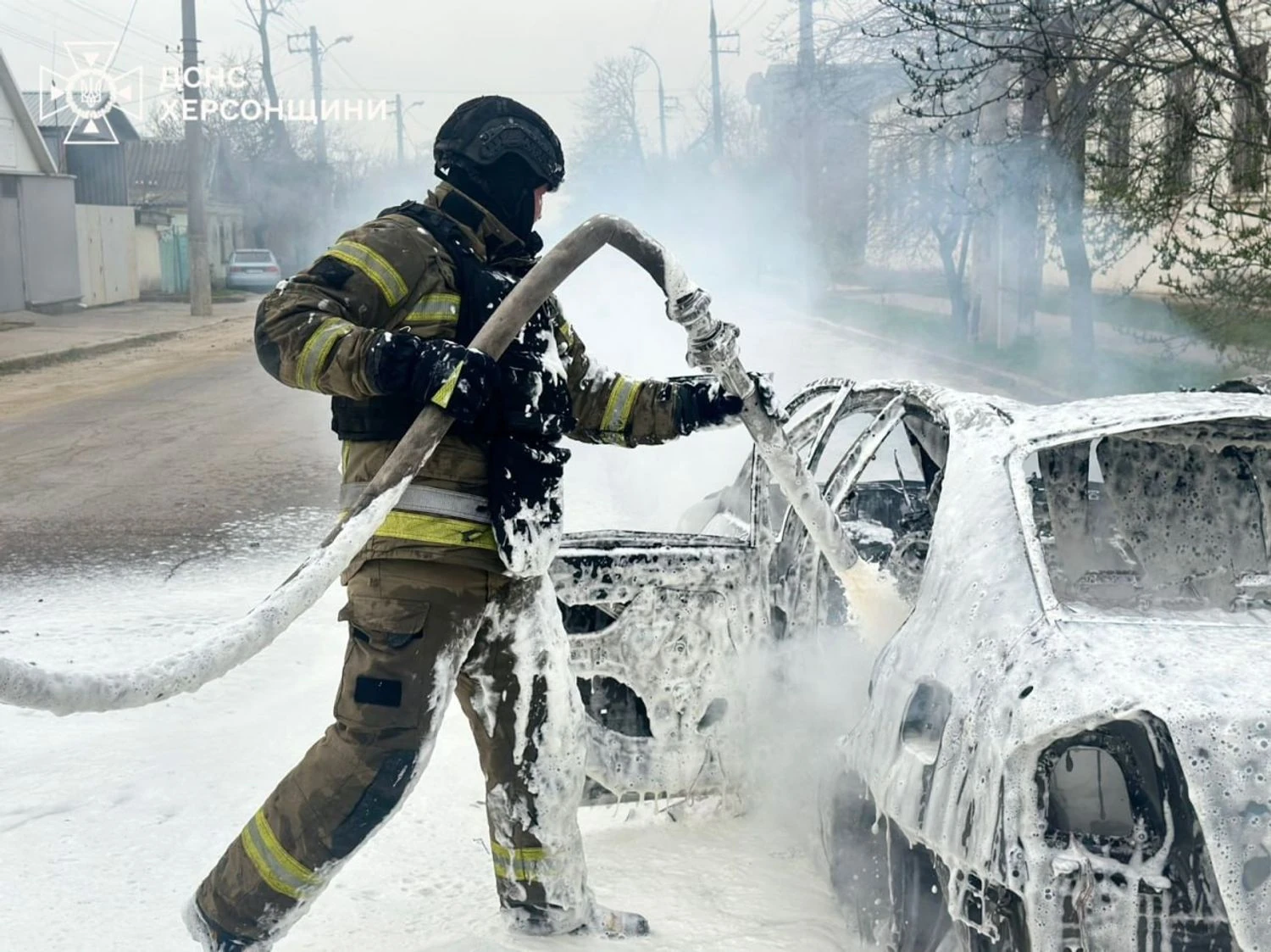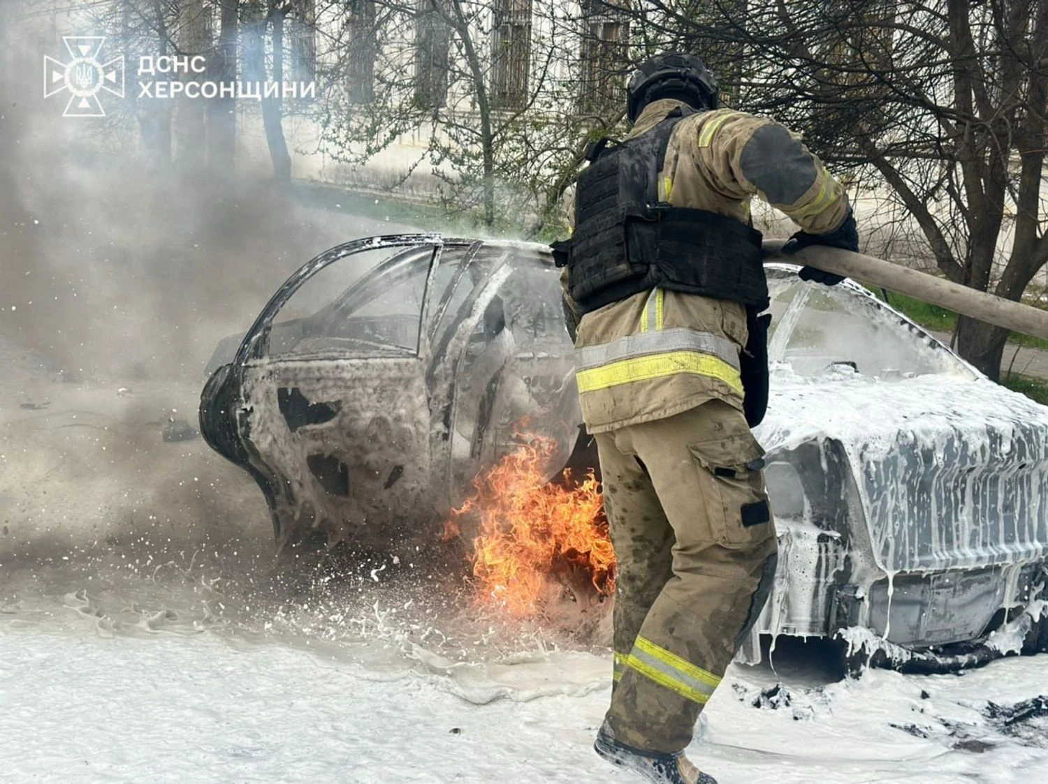 Ворожий дрон влучив у легковий автомобіль в одному з районів міста, виникла пожежа. Попри небезпеку повторних російських атак, рятувальники ліквідували пожежу.