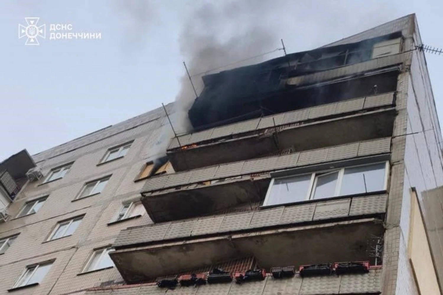 У Дружківці FPV-дрон рф влучив у дев’ятиповерхівку, сталася пожежа – ДСНС